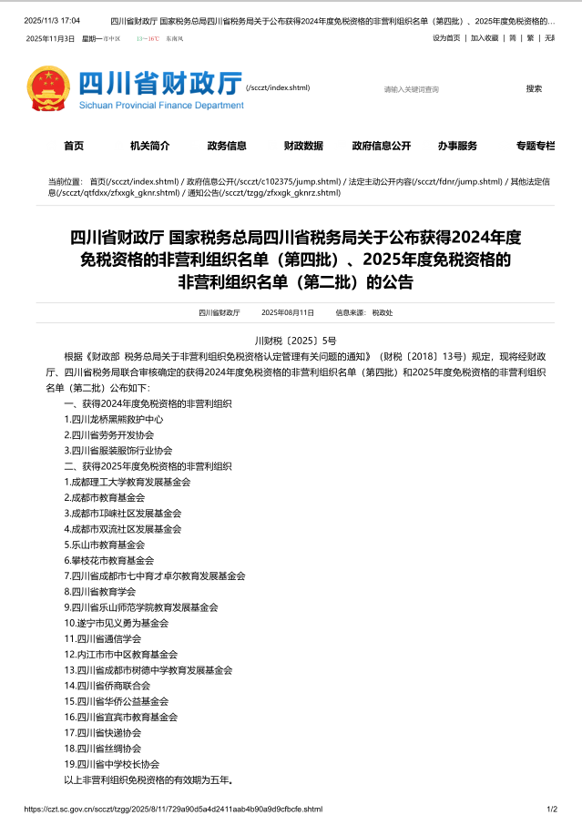 喜报!我校基金会获得2025年度非营利组织免税资格